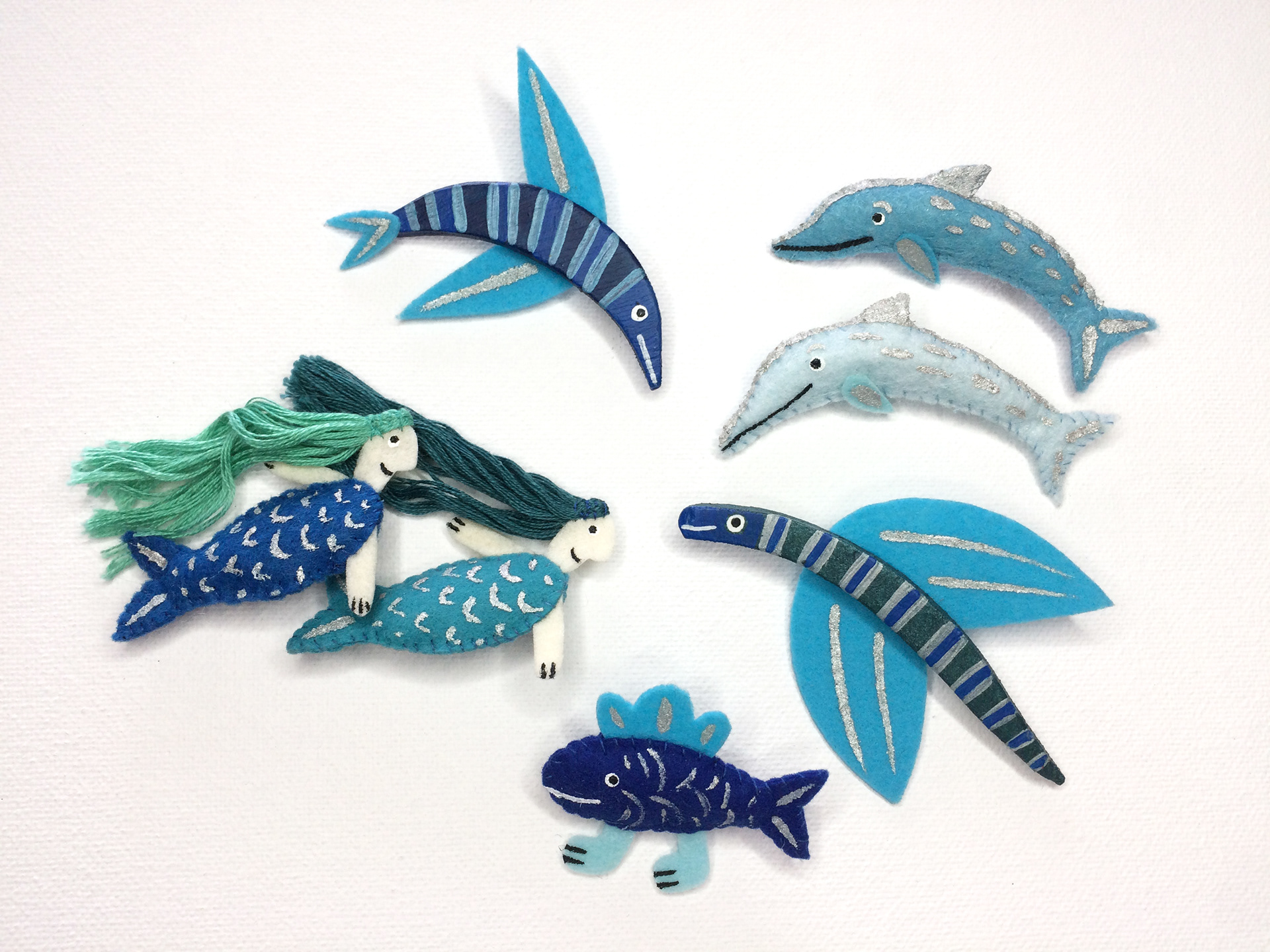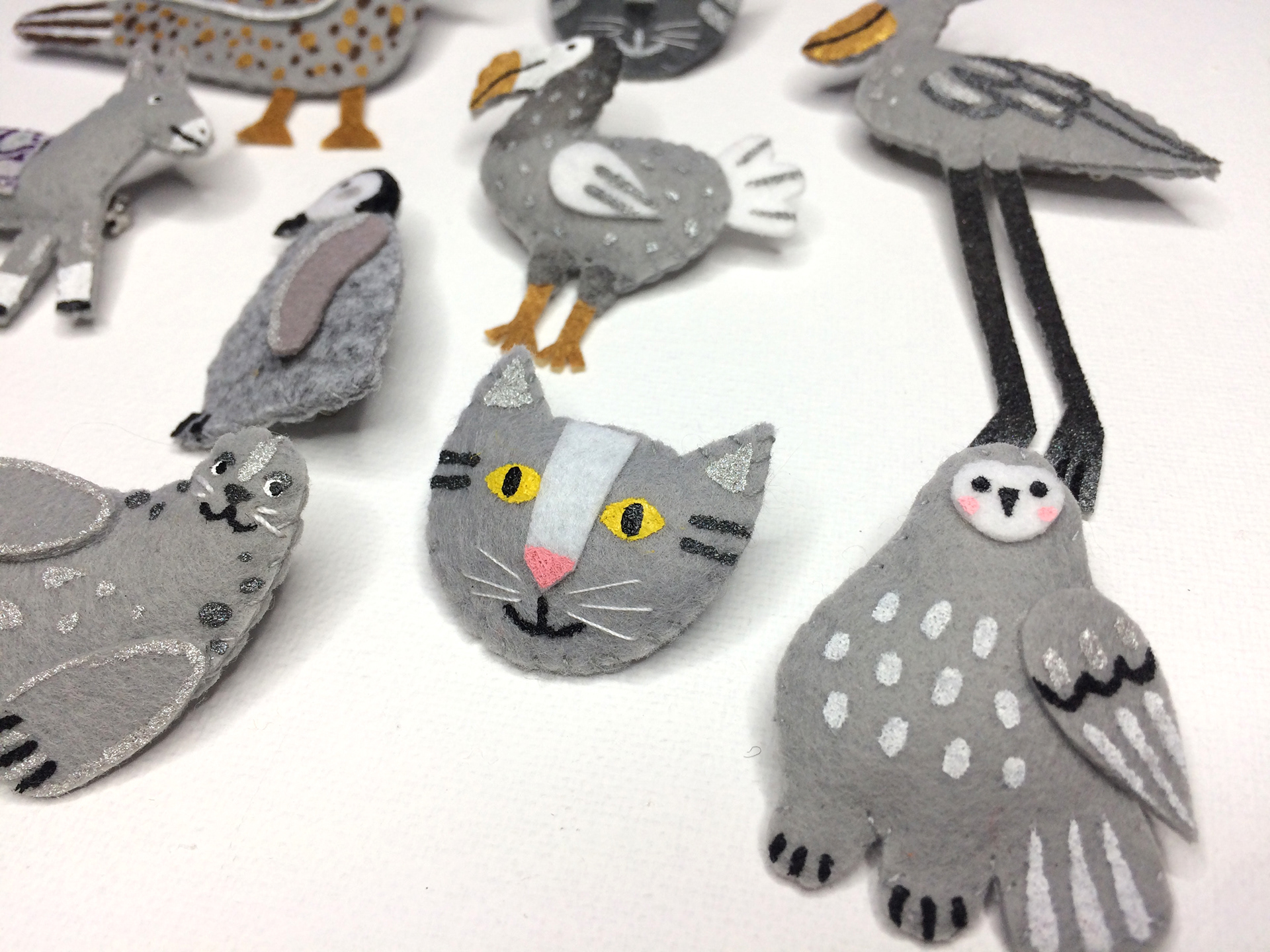 Handmade felt brooches. Animals, birds, magic creatures